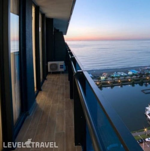 Апартаменты находятся в крупнейшем гостиничном комплексе на первой линии, в 100 м от пляжа и набережной, в центре туристического Батуми. Из окон апартаментов открываются потрясающие виды на побережье, горы и центр Батуми.