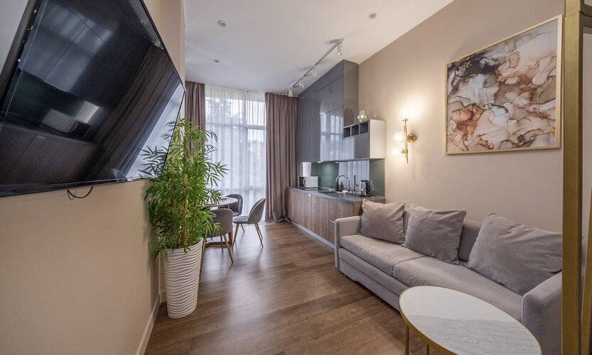 Стильные апартаменты с продуманным пространством. В распоряжении гостей — базовый набор удобств. Расположены в центре, в шаговой доступности от музеев, фонтанов и парка аттракционов.